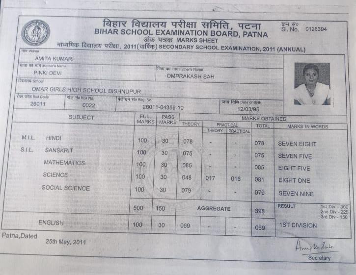 | Exam | Full Marks | Pass Marks | Marks Obtained |