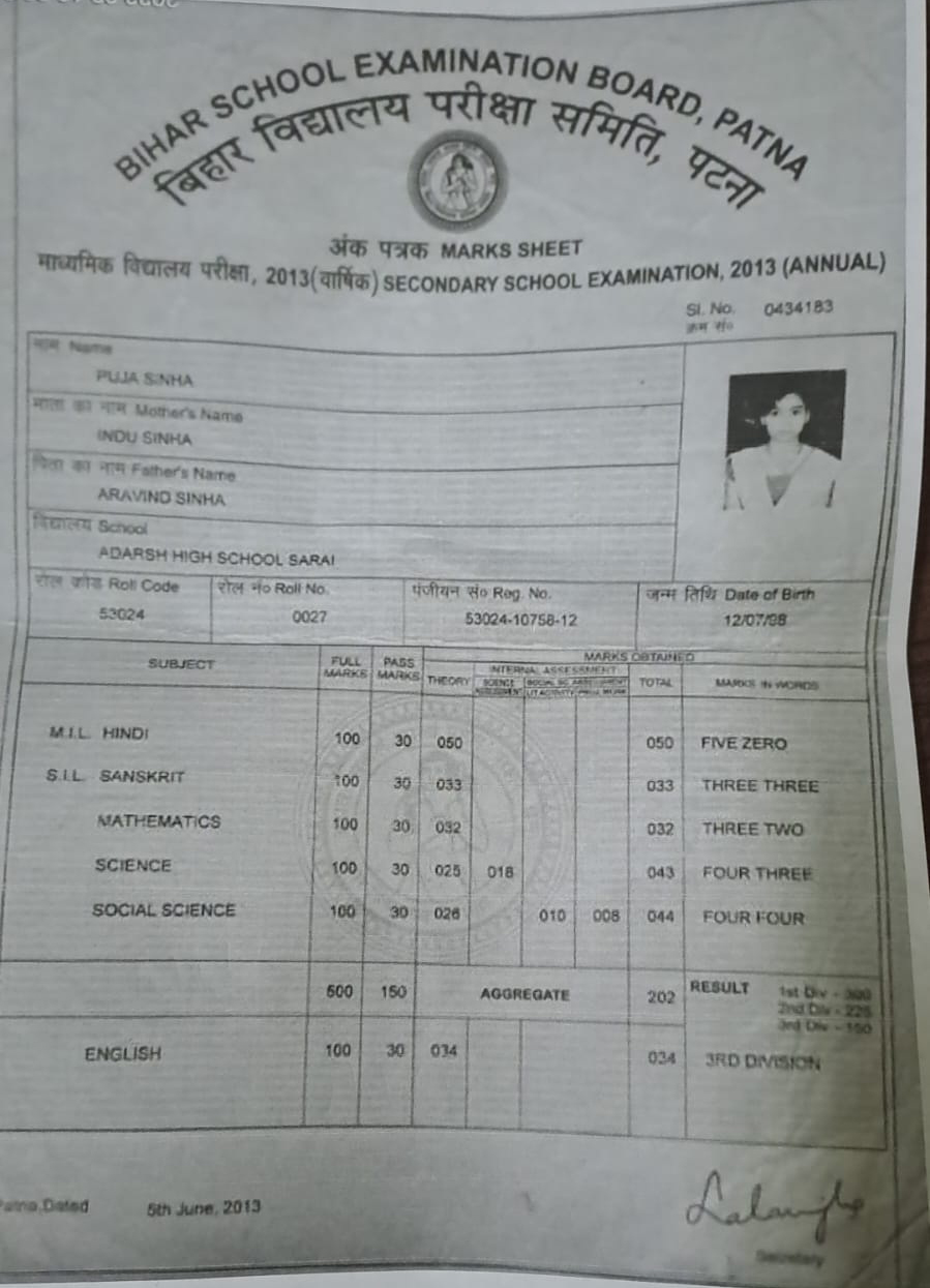 | Exam | Full Marks | Pass Marks | Marks Obtained |