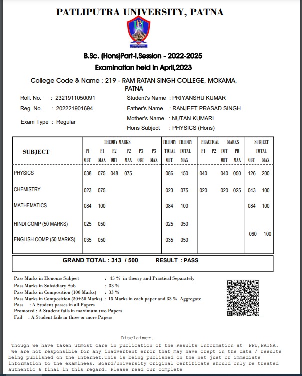 | Exam | Full Marks | Pass Marks | Marks Obtained |
