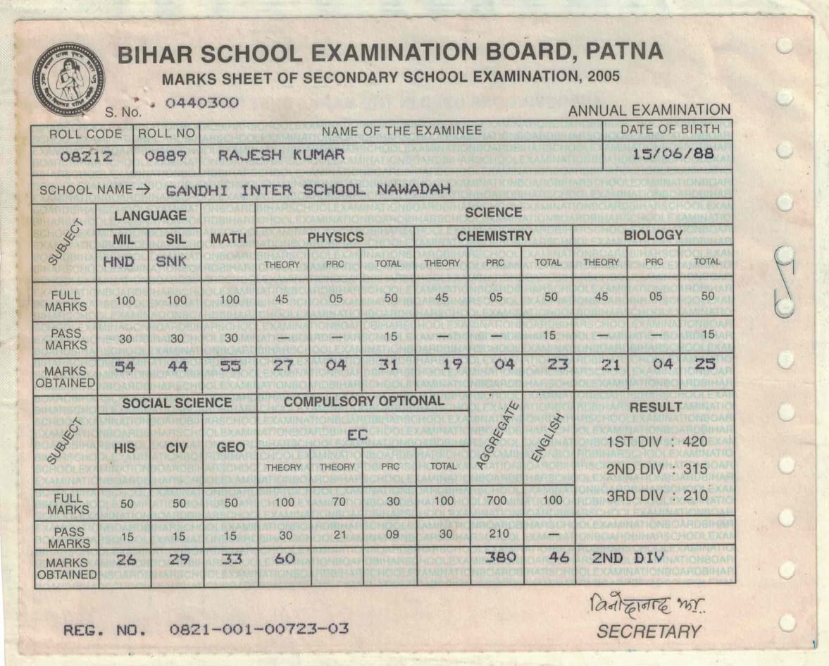 | Exam | Full Marks | Pass Marks | Marks Obtained |