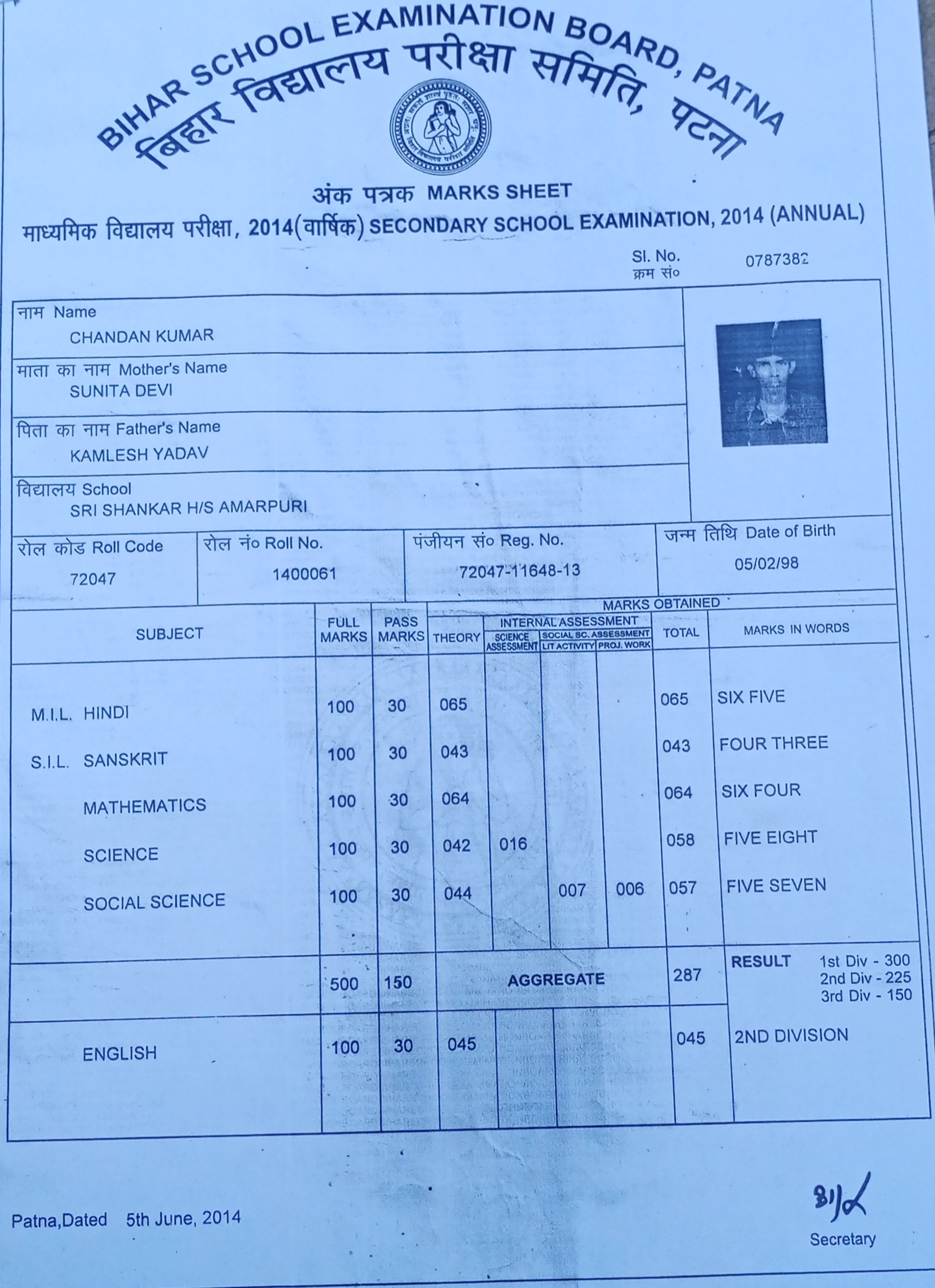 | Exam | Full Marks | Pass Marks | Marks Obtained |