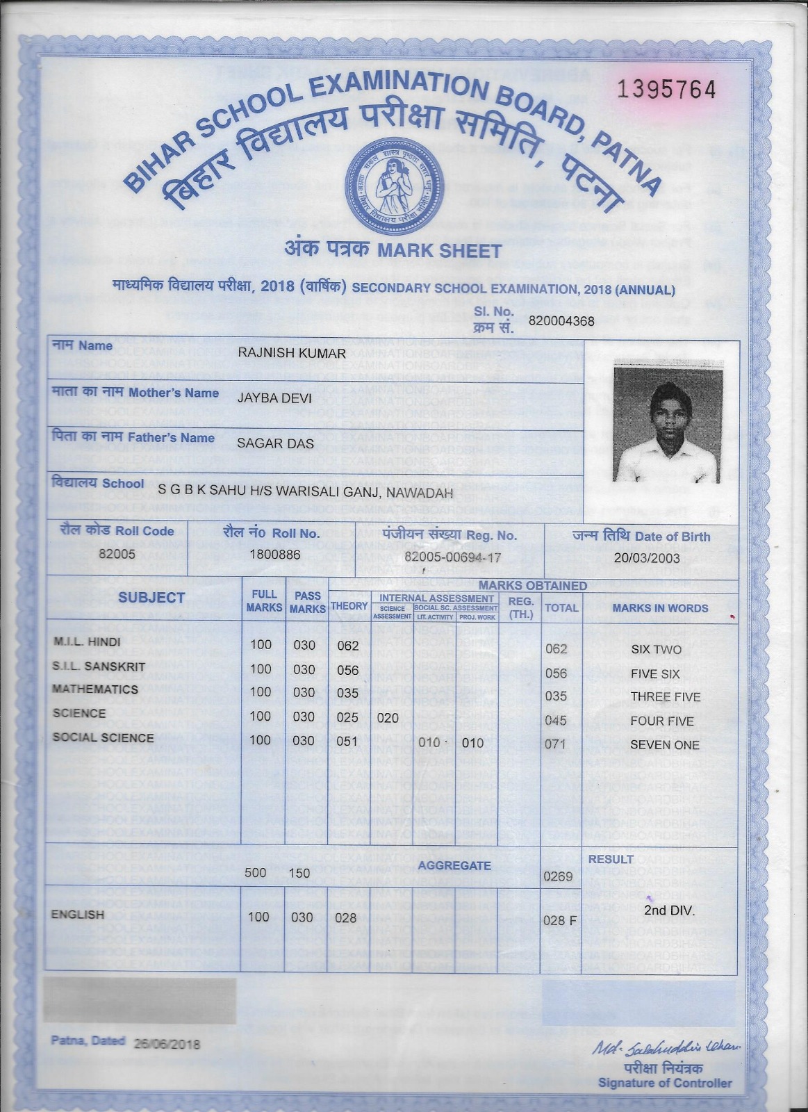 | Exam | Full Marks | Pass Marks | Marks Obtained |