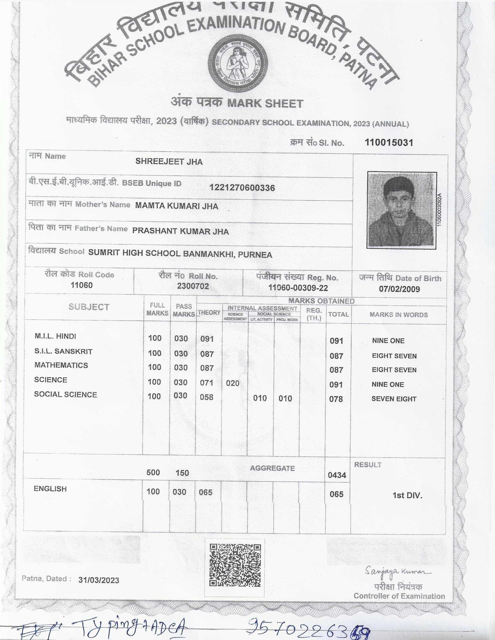 | Exam | Full Marks | Pass Marks | Marks Obtained |