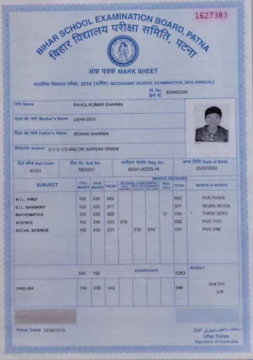 | Exam | Full Marks | Pass Marks | Marks Obtained |
