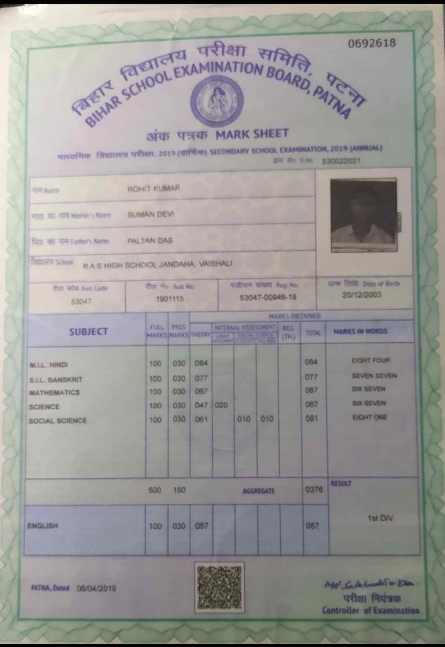 | Exam | Full Marks | Pass Marks | Marks Obtained |