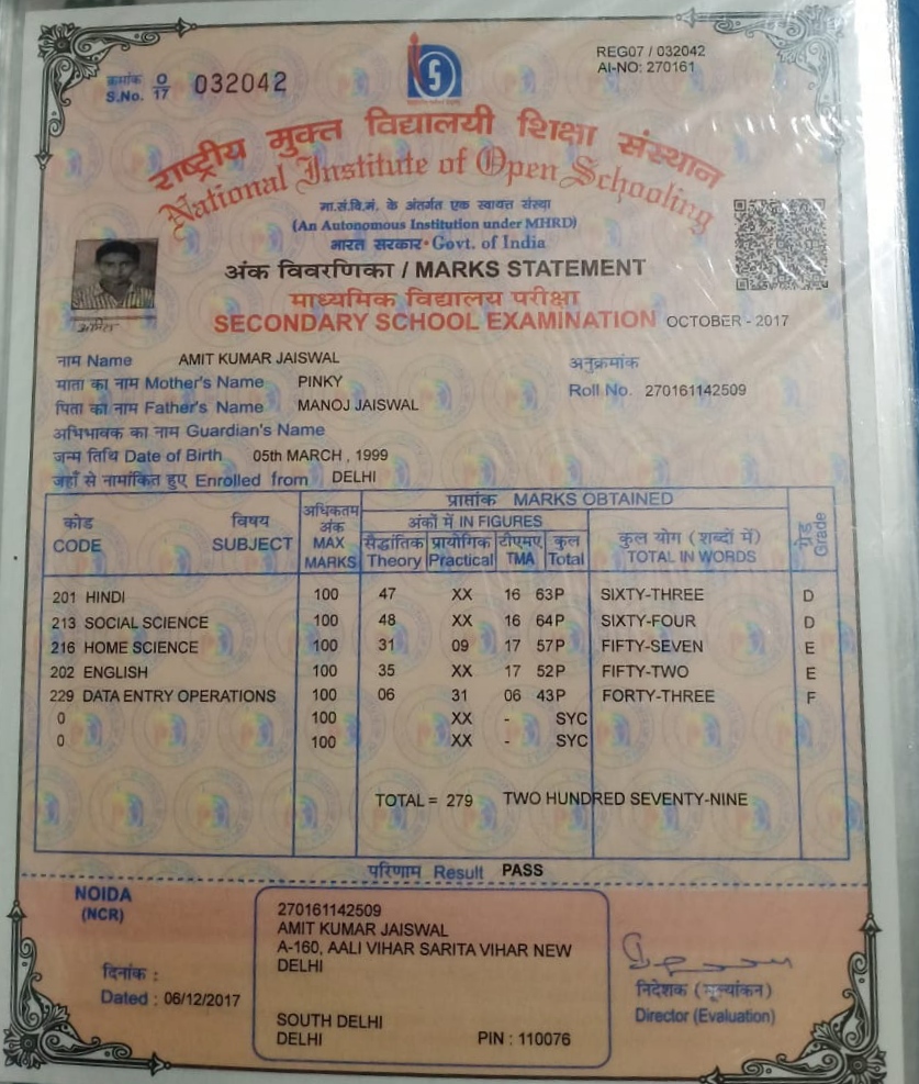 | Exam | Full Marks | Pass Marks | Marks Obtained |