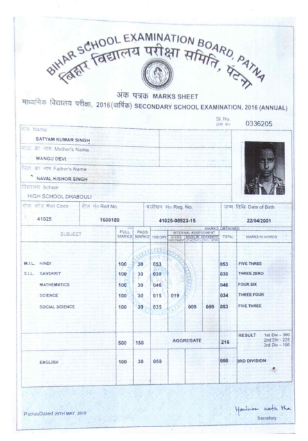 | Exam | Full Marks | Pass Marks | Marks Obtained |