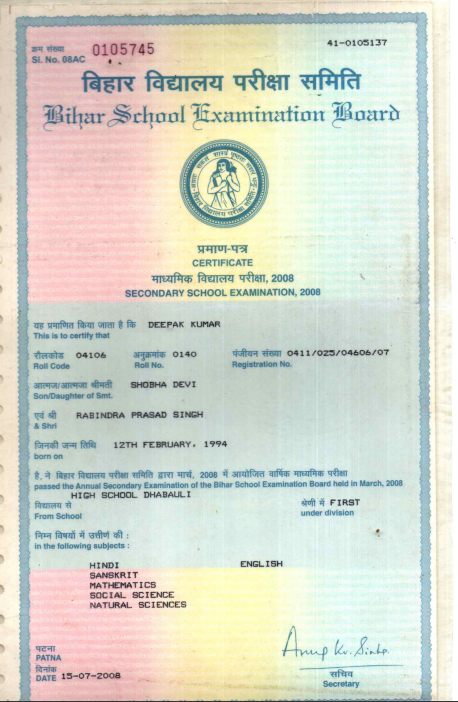 | Exam | Full Marks | Pass Marks | Marks Obtained |