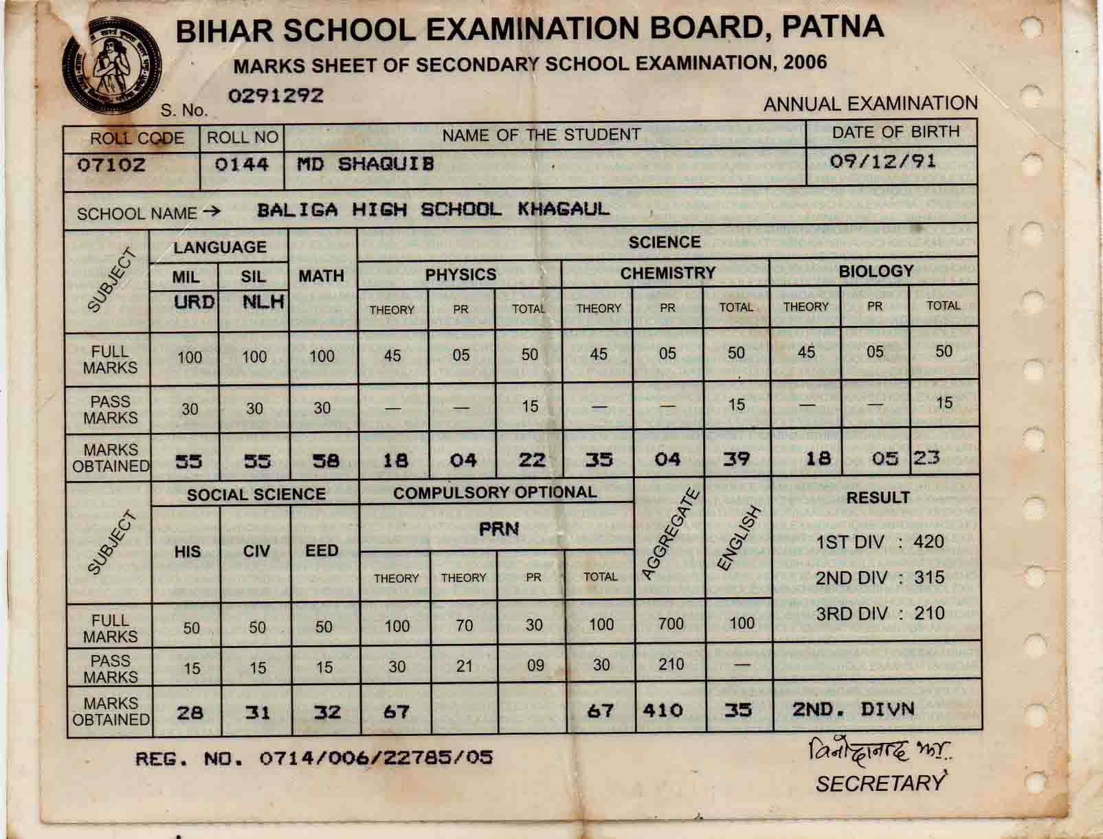 | Exam | Full Marks | Pass Marks | Marks Obtained |