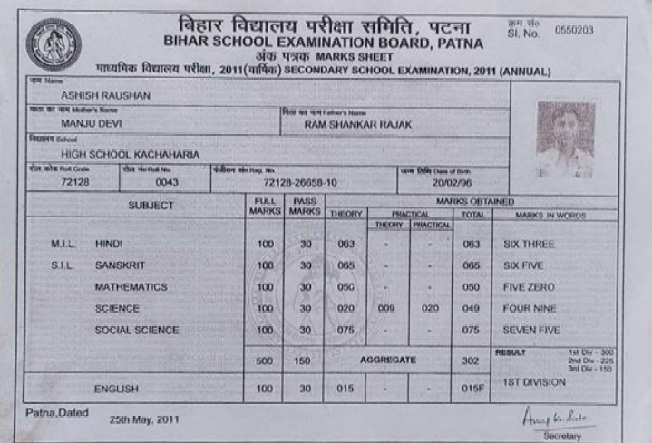| Exam | Full Marks | Pass Marks | Marks Obtained |