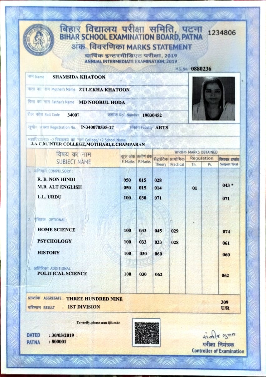 | : | Zulekha Khatoon | |