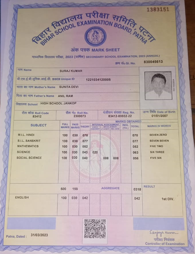 | Exam | Full Marks | Pass Marks | Marks Obtained |