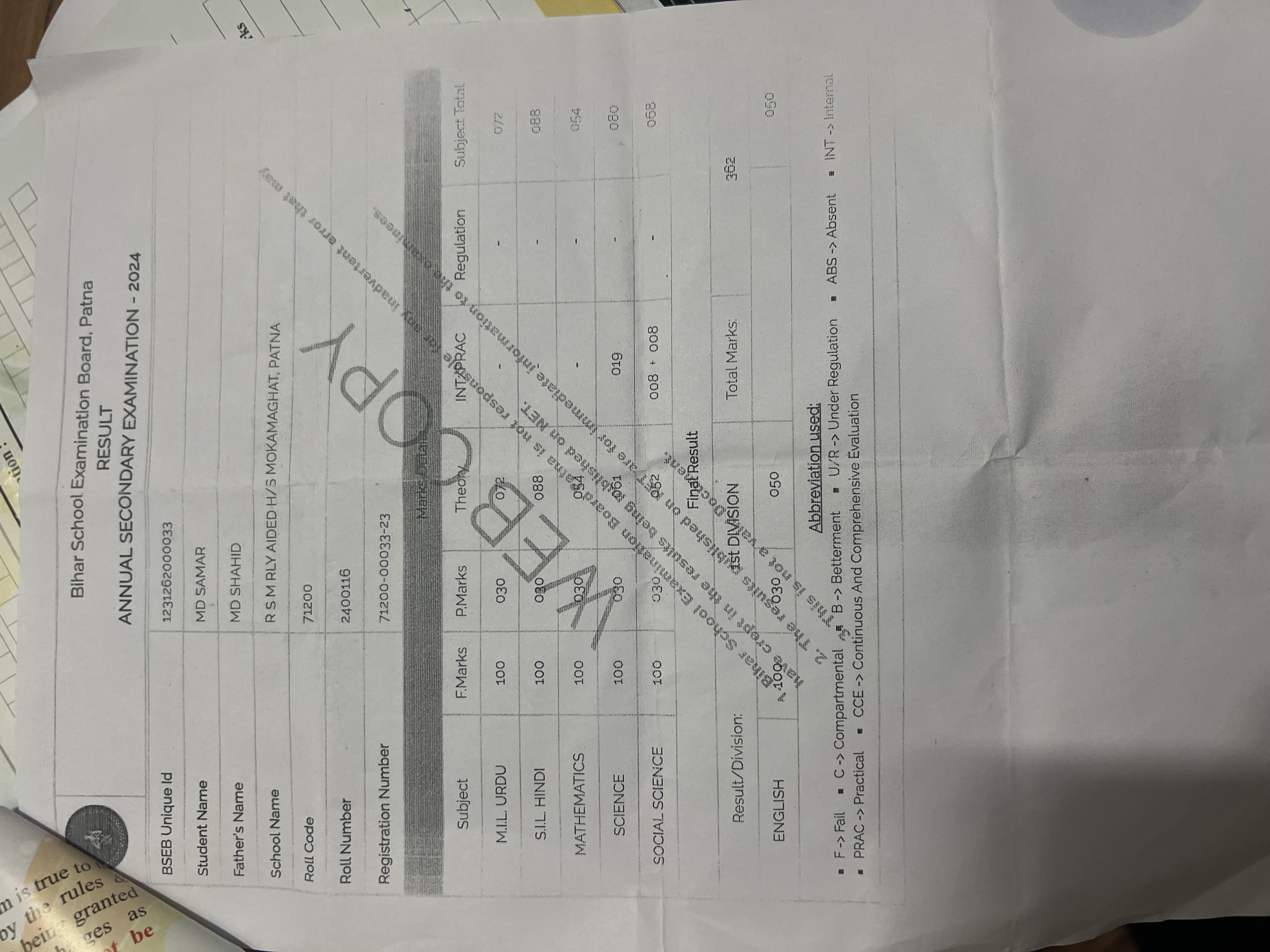 | Exam | Full Marks | Pass Marks | Marks Obtained |