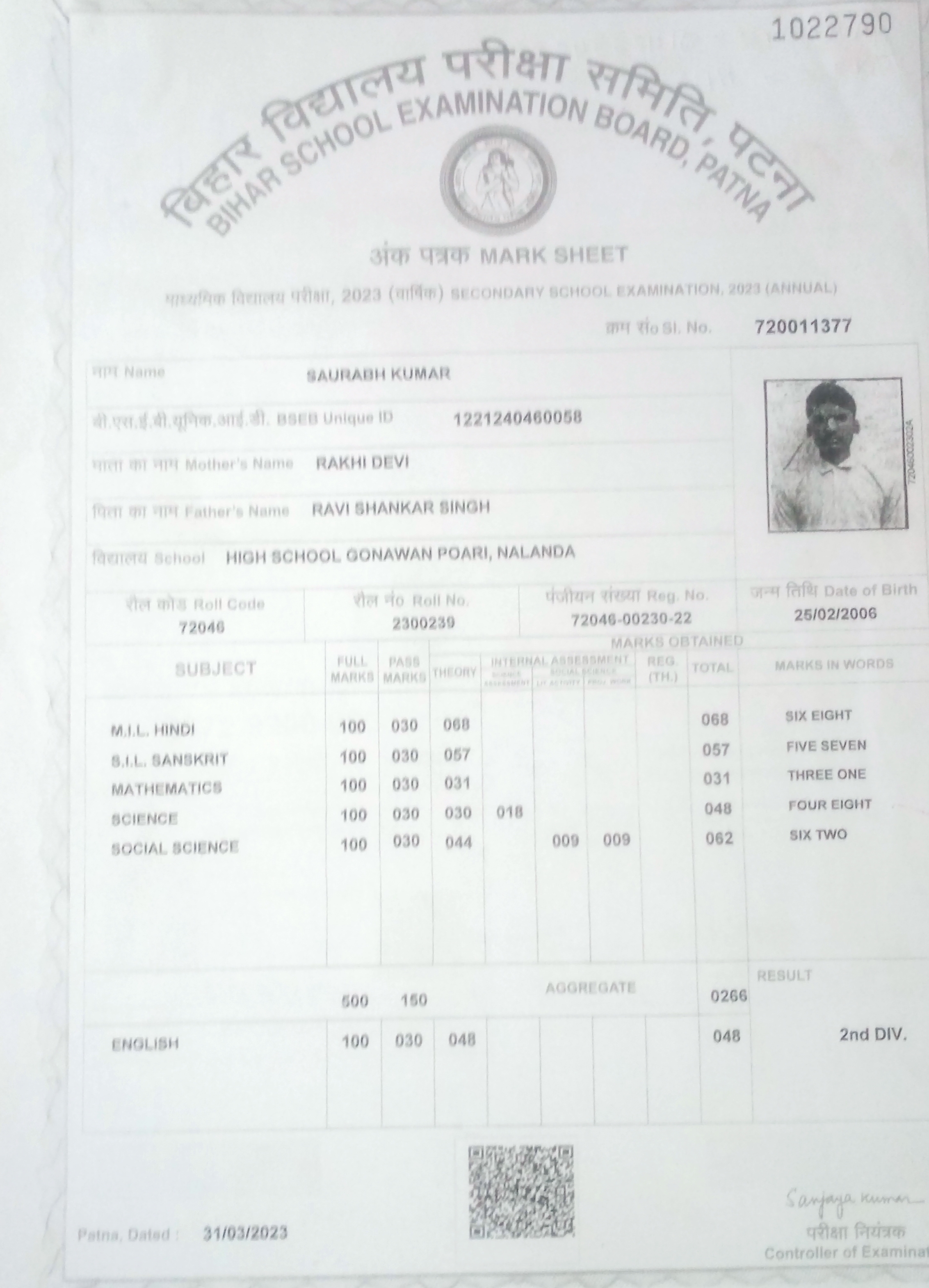 | Exam | Full Marks | Pass Marks | Marks Obtained |