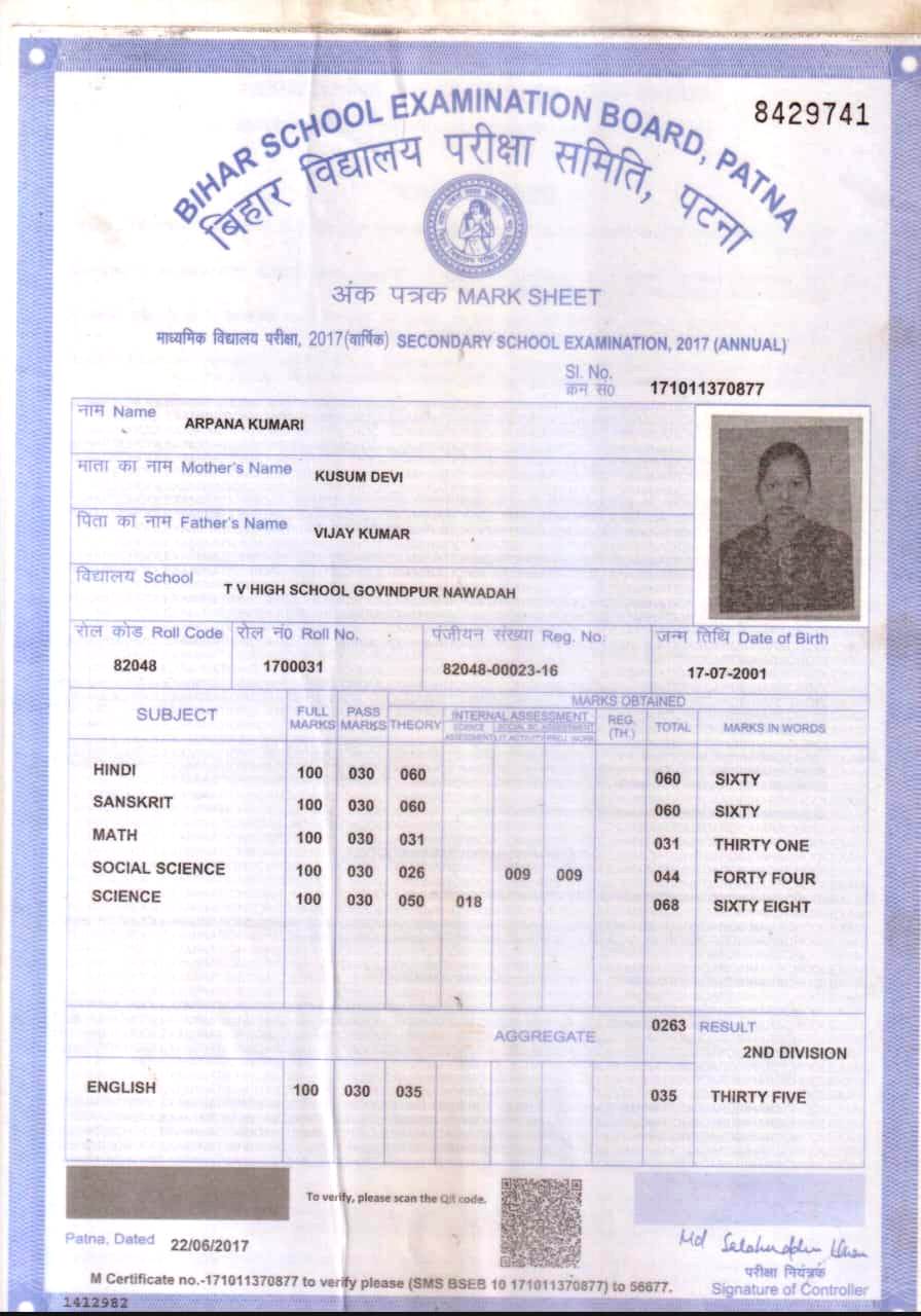| Exam | Full Marks | Pass Marks | Marks Obtained |