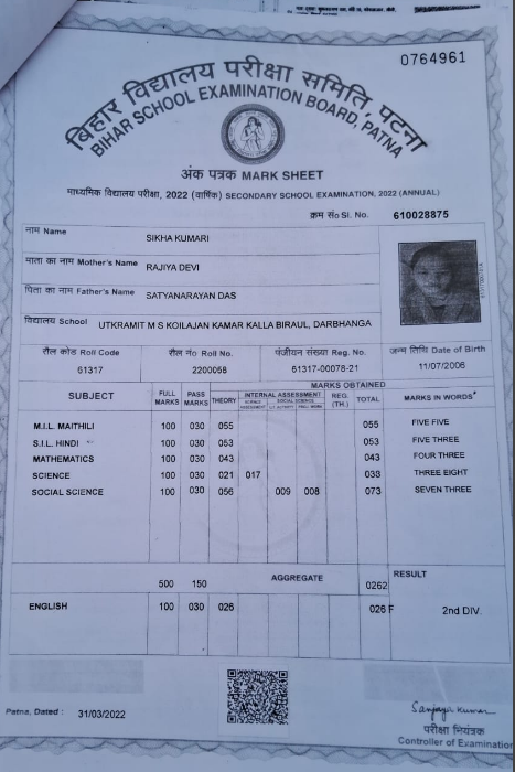 | Exam | Full Marks | Pass Marks | Marks Obtained |