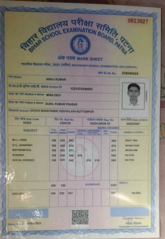 | Exam | Full Marks | Pass Marks | Marks Obtained |