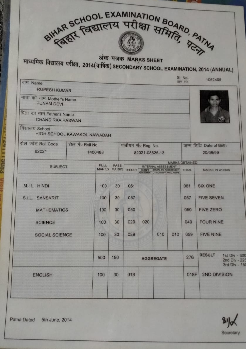 | Exam | Full Marks | Pass Marks | Marks Obtained |