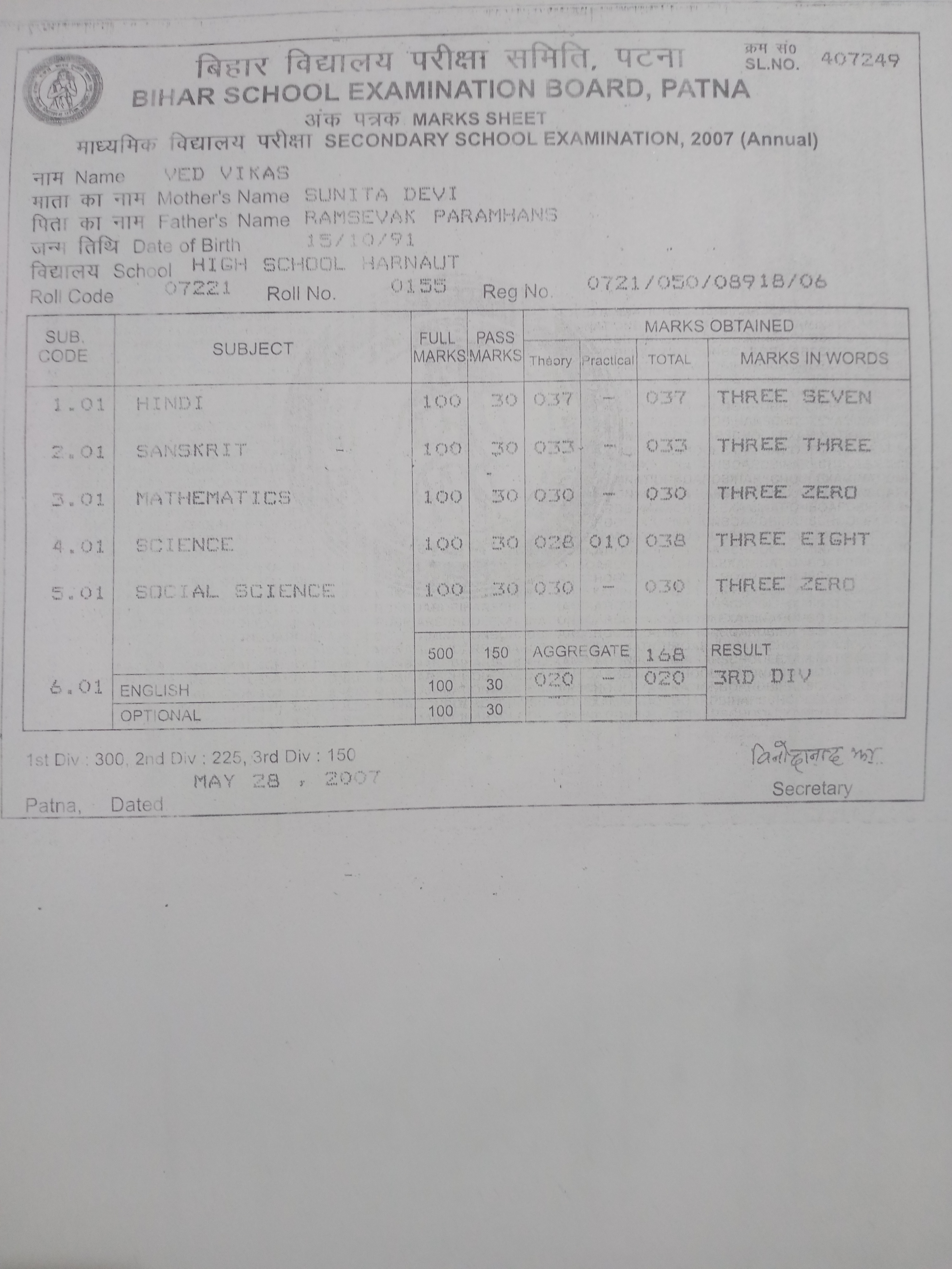 | Exam | Full Marks | Pass Marks | Marks Obtained |