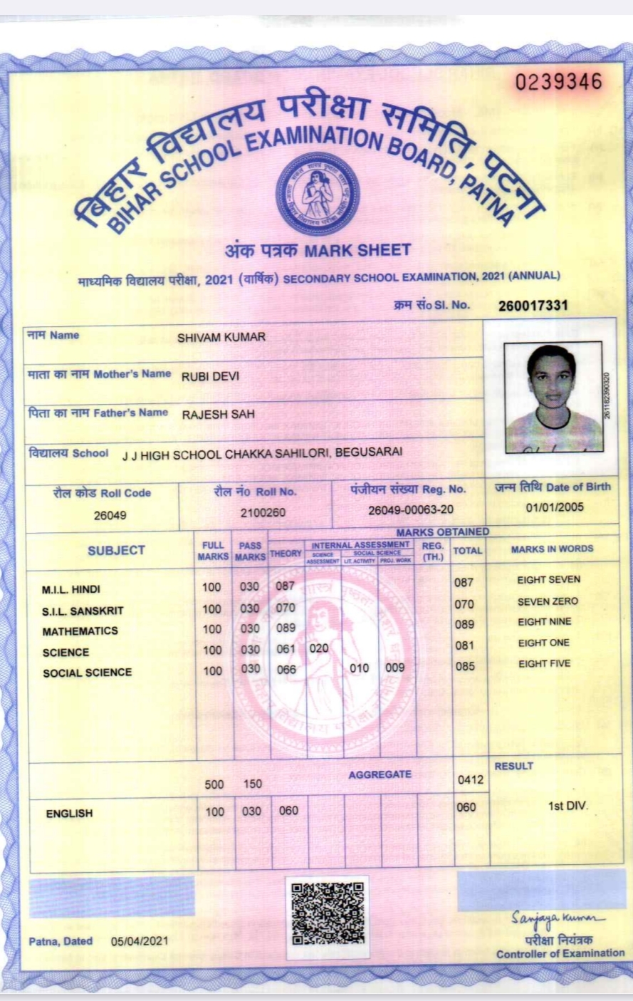 | Exam | Full Marks | Pass Marks | Marks Obtained |