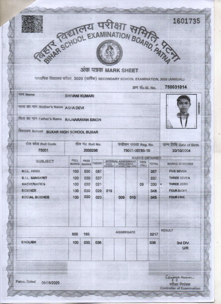 | Exam | Full Marks | Pass Marks | Marks Obtained |