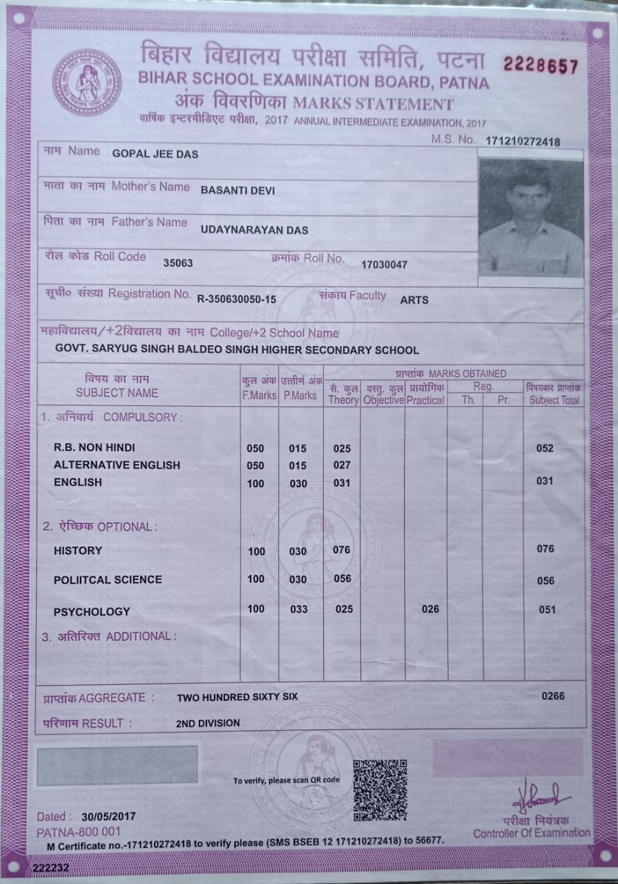 | Exam | Full Marks | Pass Marks | Marks Obtained |