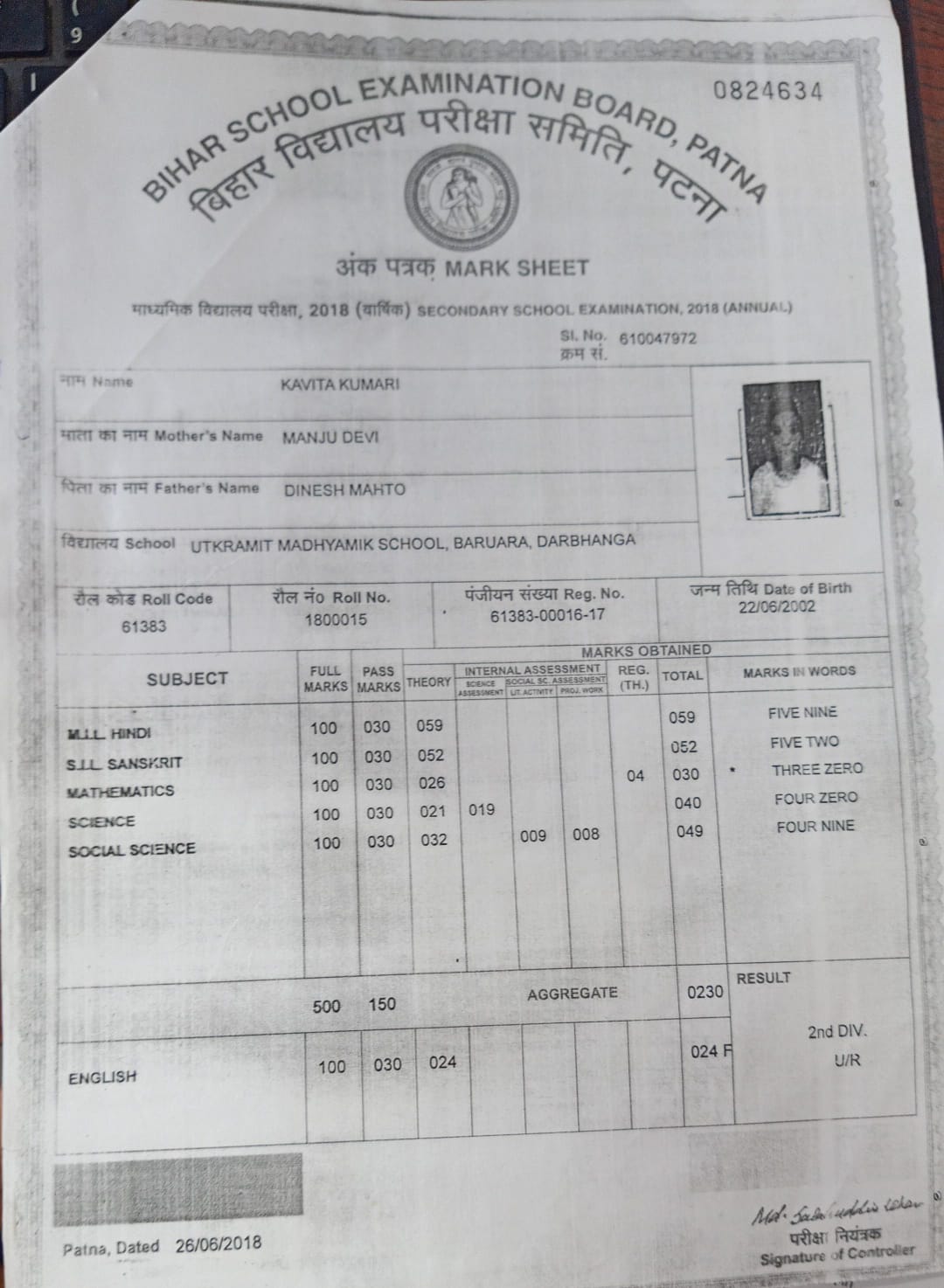 | Exam | Full Marks | Pass Marks | Marks Obtained |