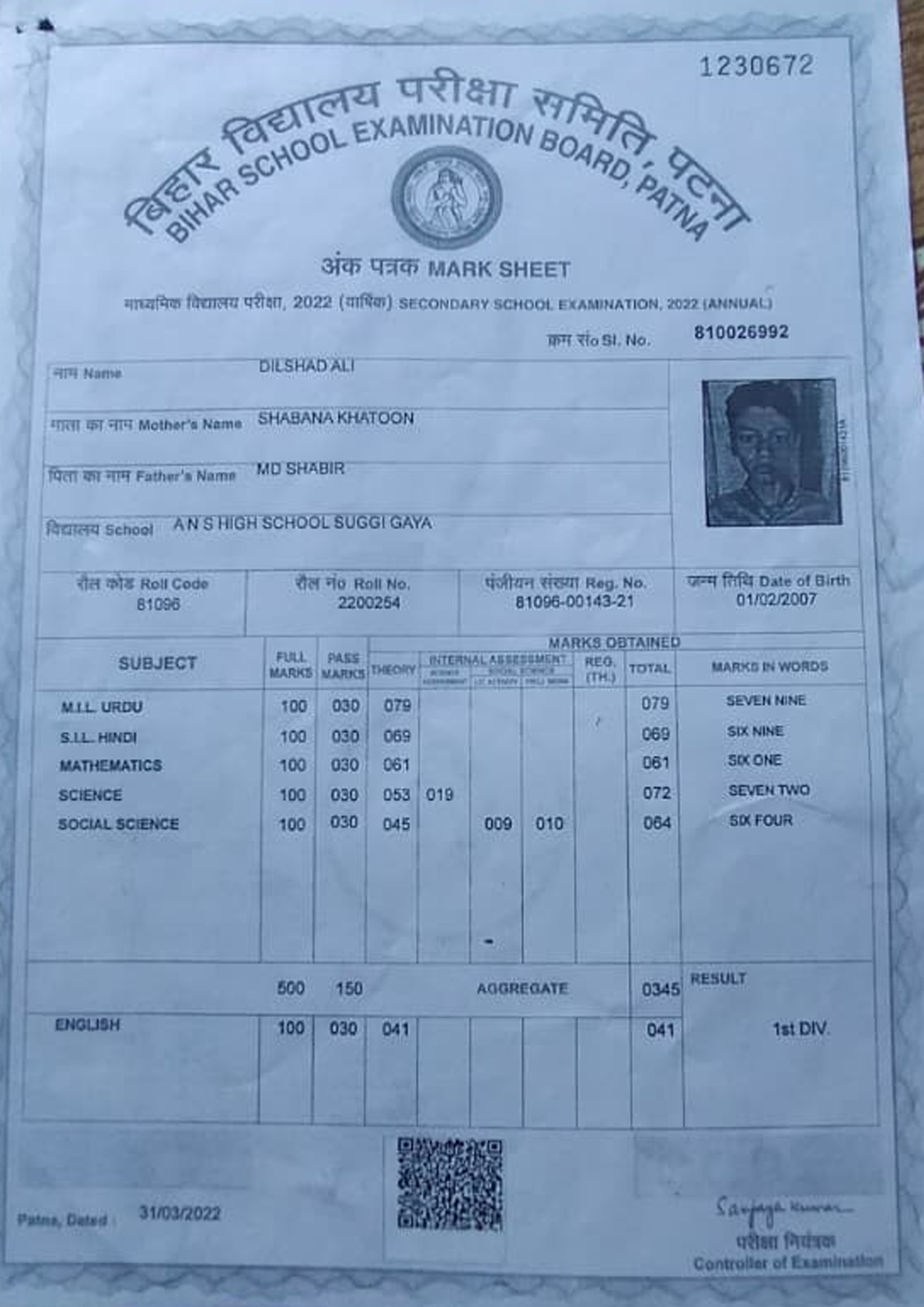 | Exam | Full Marks | Pass Marks | Marks Obtained |