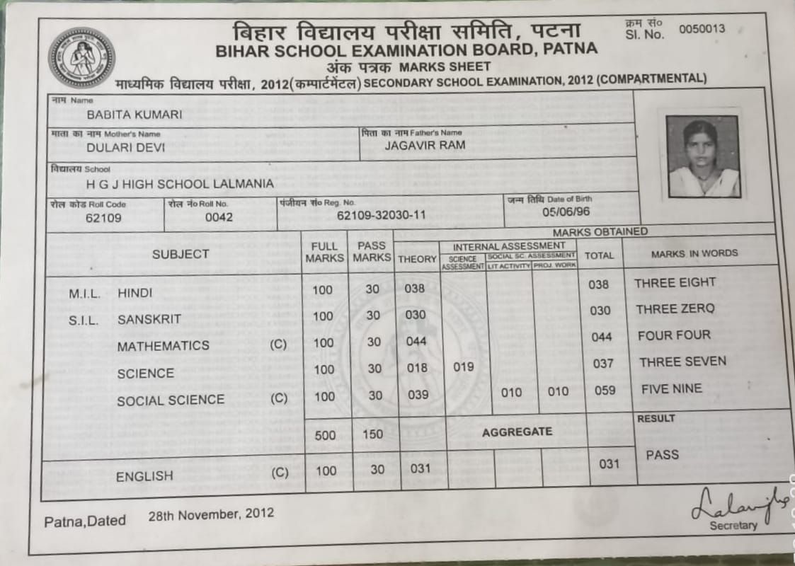 | Exam | Full Marks | Pass Marks | Marks Obtained |