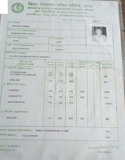 | Exam | Full Marks | Pass Marks | Marks Obtained |