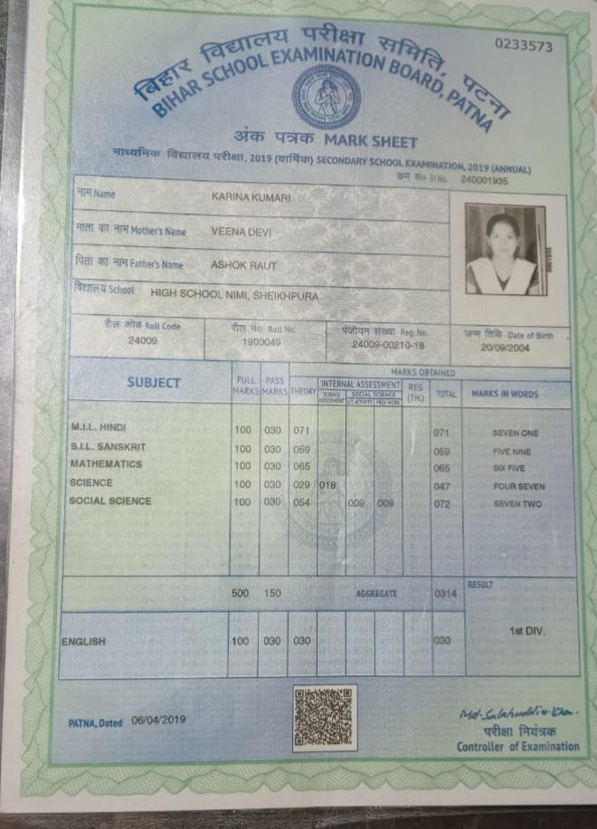 | Exam | Full Marks | Pass Marks | Marks Obtained |