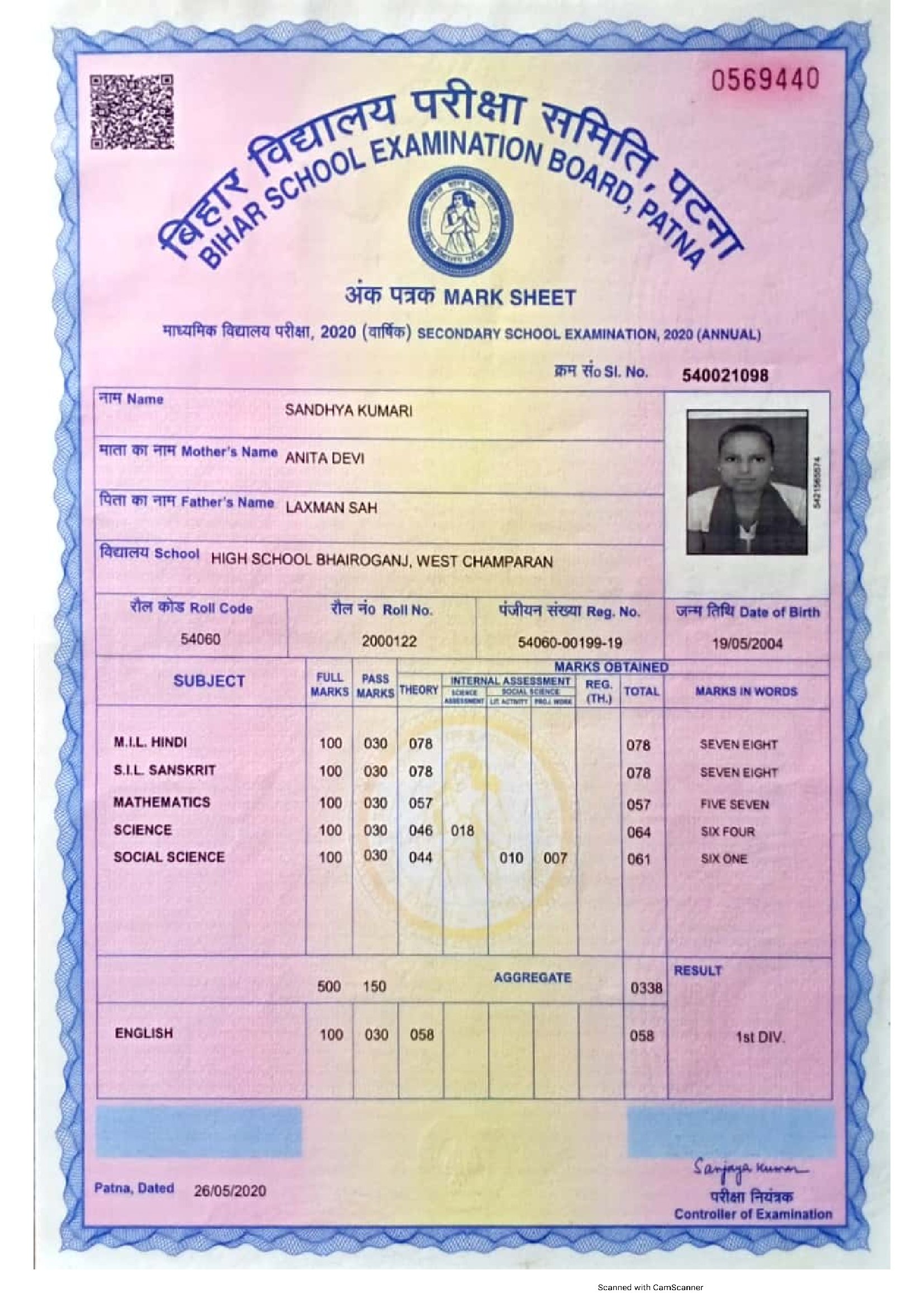 | Exam | Full Marks | Pass Marks | Marks Obtained |