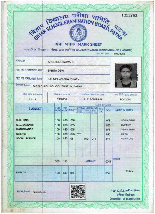 | Exam | Full Marks | Pass Marks | Marks Obtained |