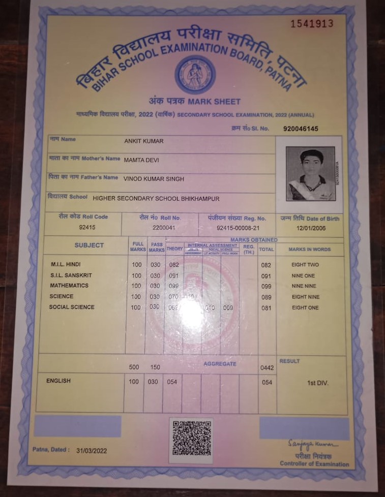 | Exam | Full Marks | Pass Marks | Marks Obtained |