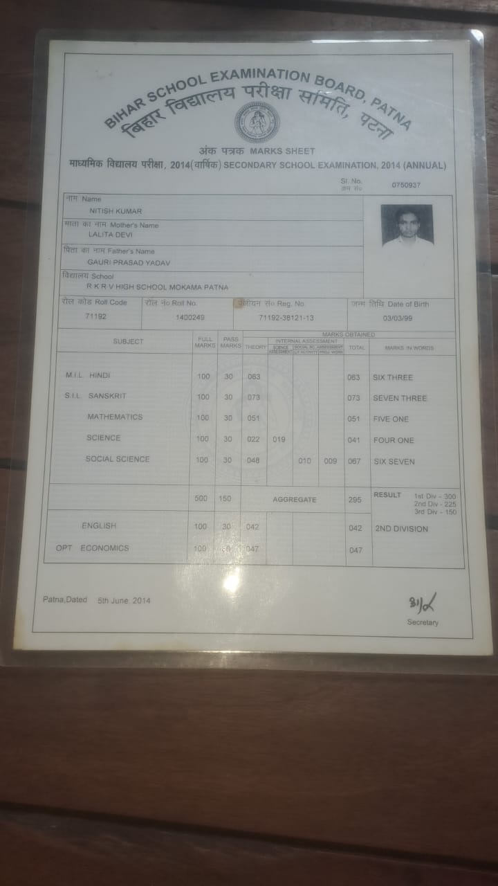 | Exam | Full Marks | Pass Marks | Marks Obtained |