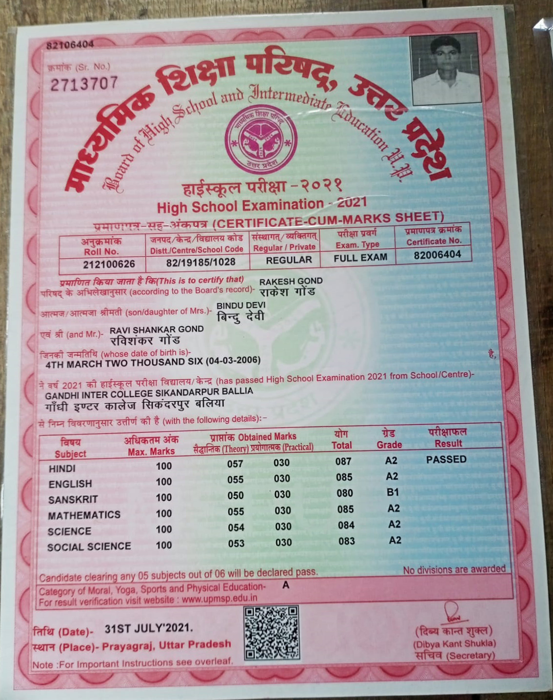 | Exam | Full Marks | Pass Marks | Marks Obtained |