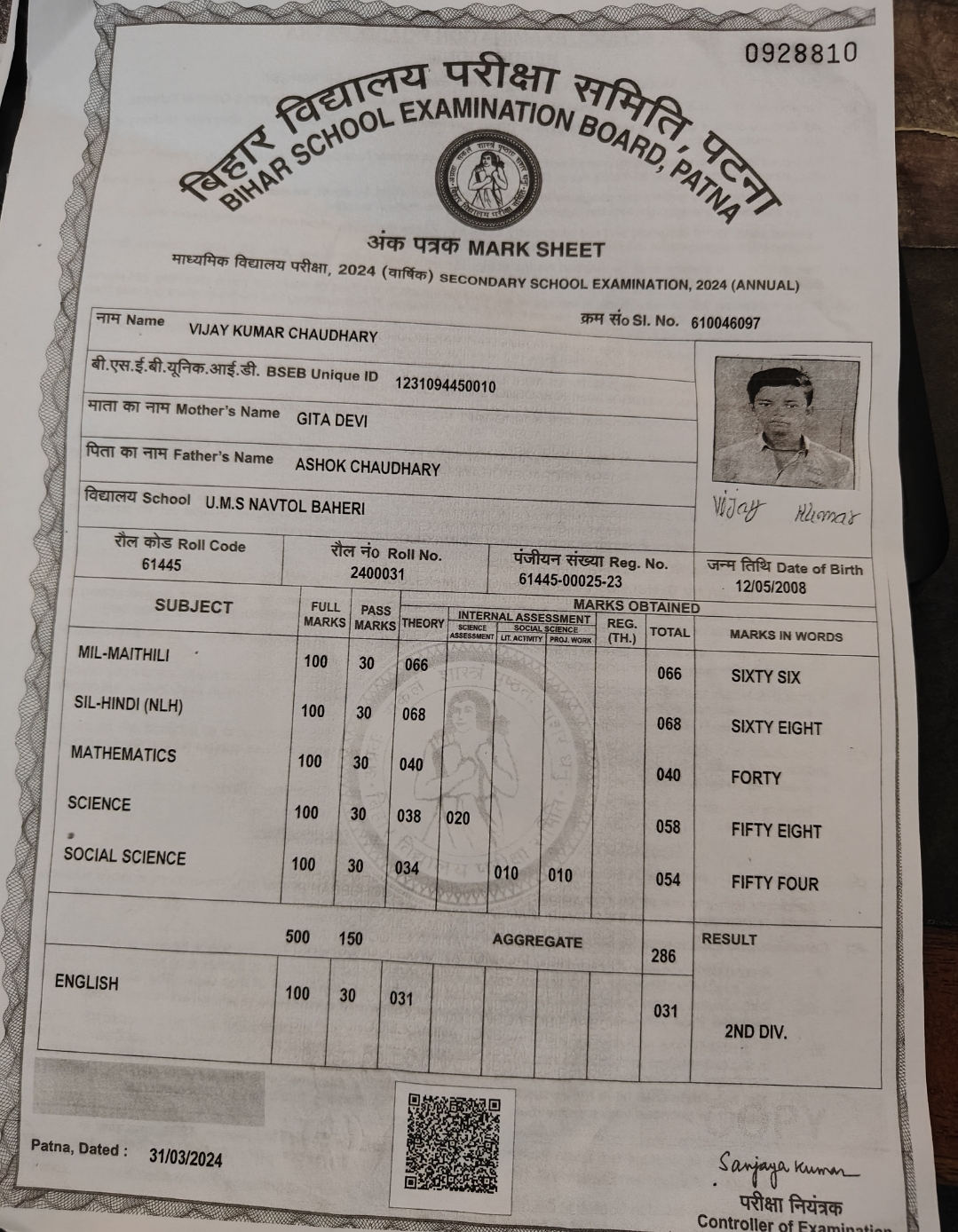 | Exam | Full Marks | Pass Marks | Marks Obtained |
