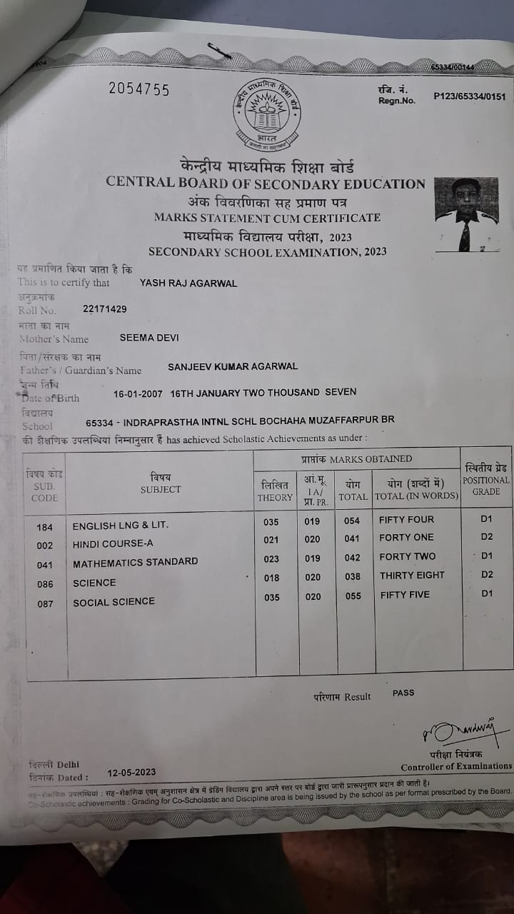 | Exam | Full Marks | Pass Marks | Marks Obtained |