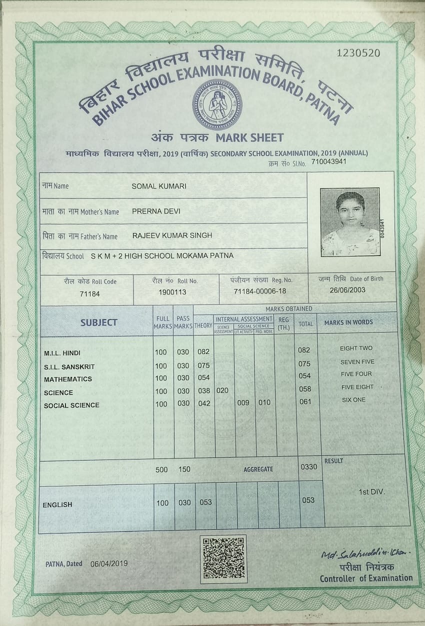 | Exam | Full Marks | Pass Marks | Marks Obtained |