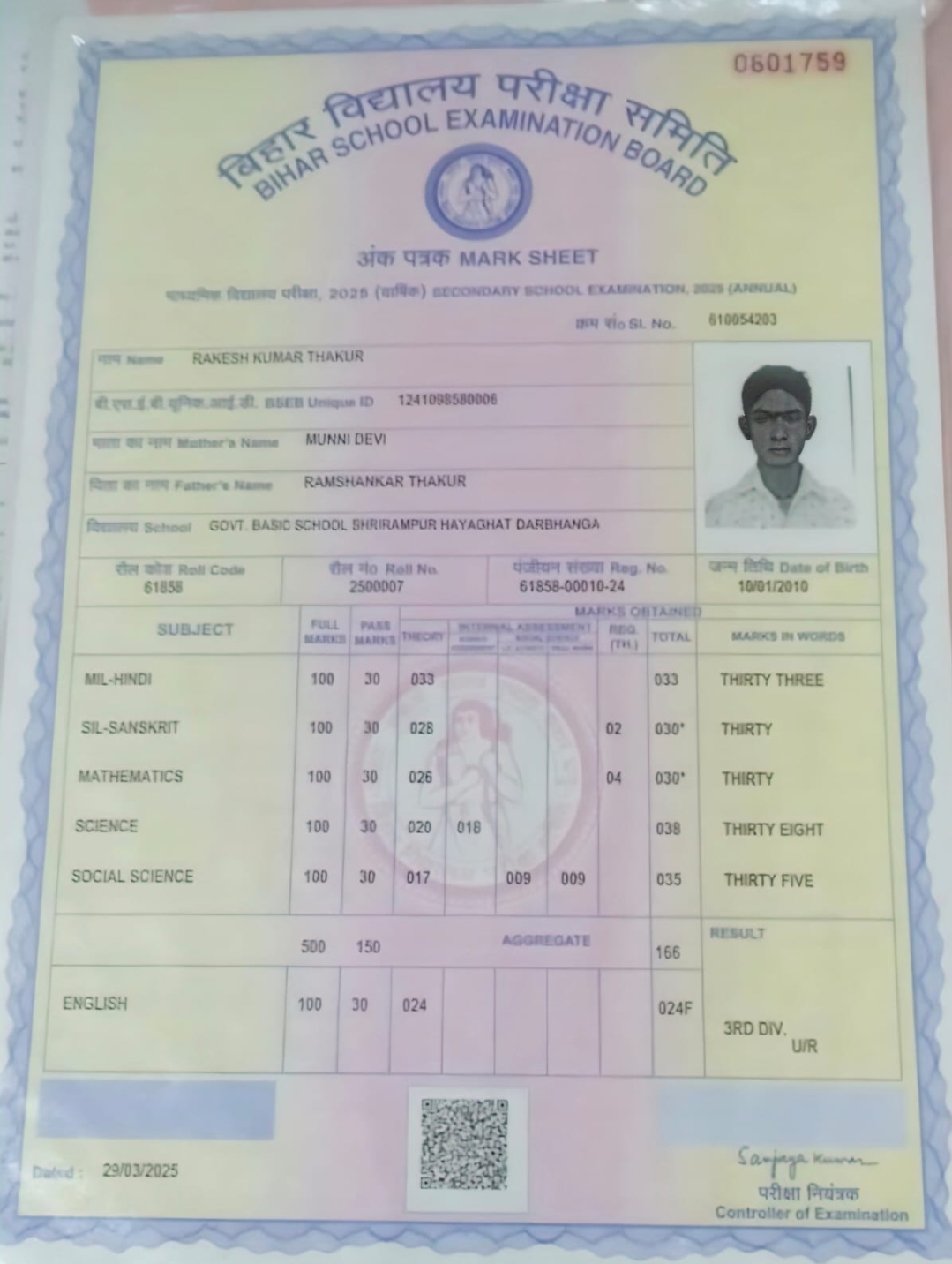 | Exam | Full Marks | Pass Marks | Marks Obtained |