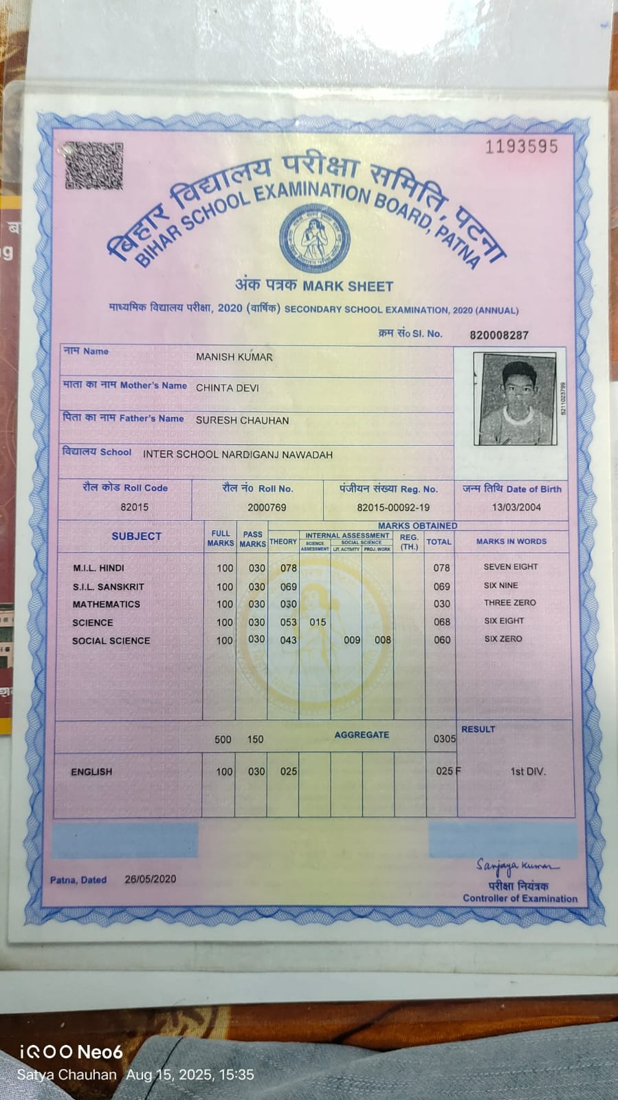 | Exam | Full Marks | Pass Marks | Marks Obtained |