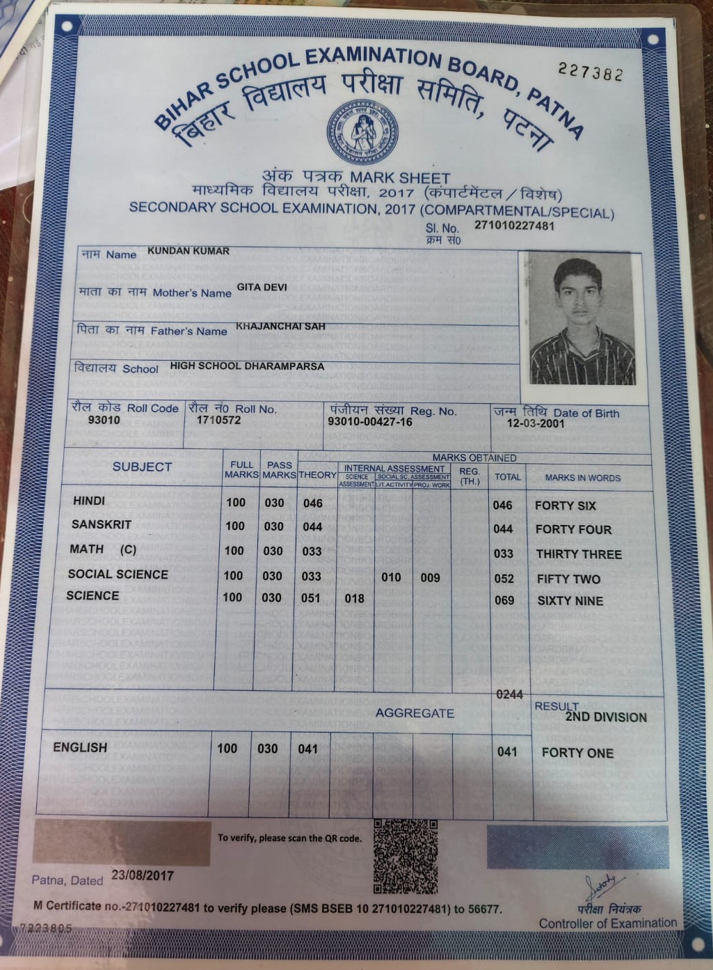 | Exam | Full Marks | Pass Marks | Marks Obtained |