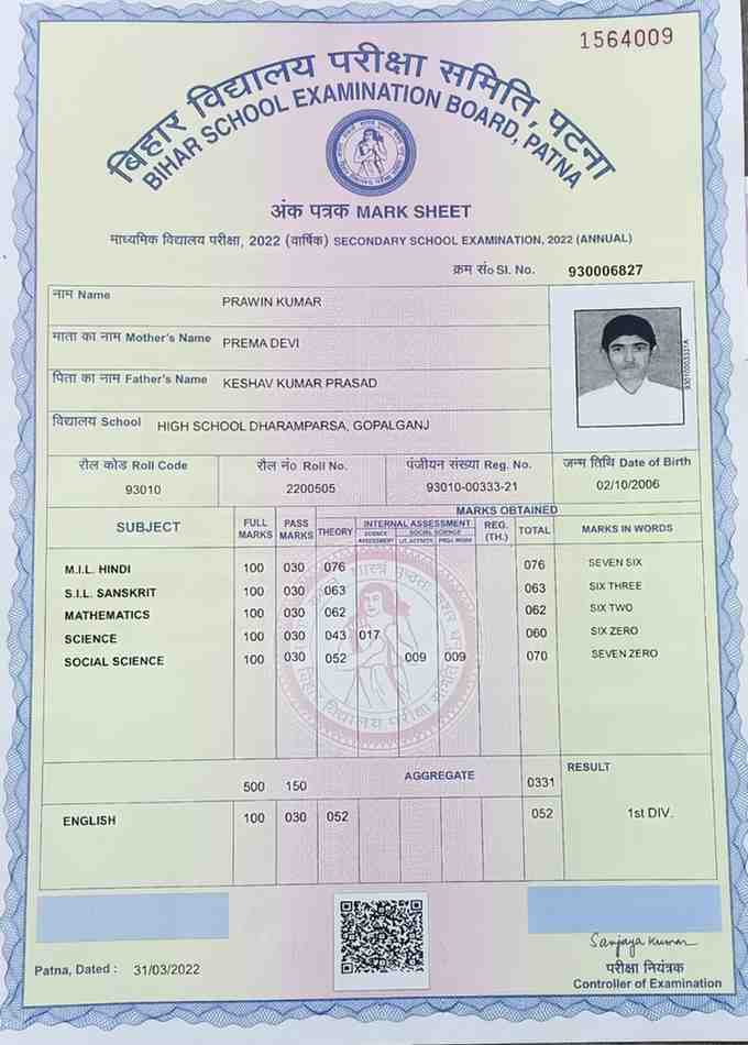 | Exam | Full Marks | Pass Marks | Marks Obtained |