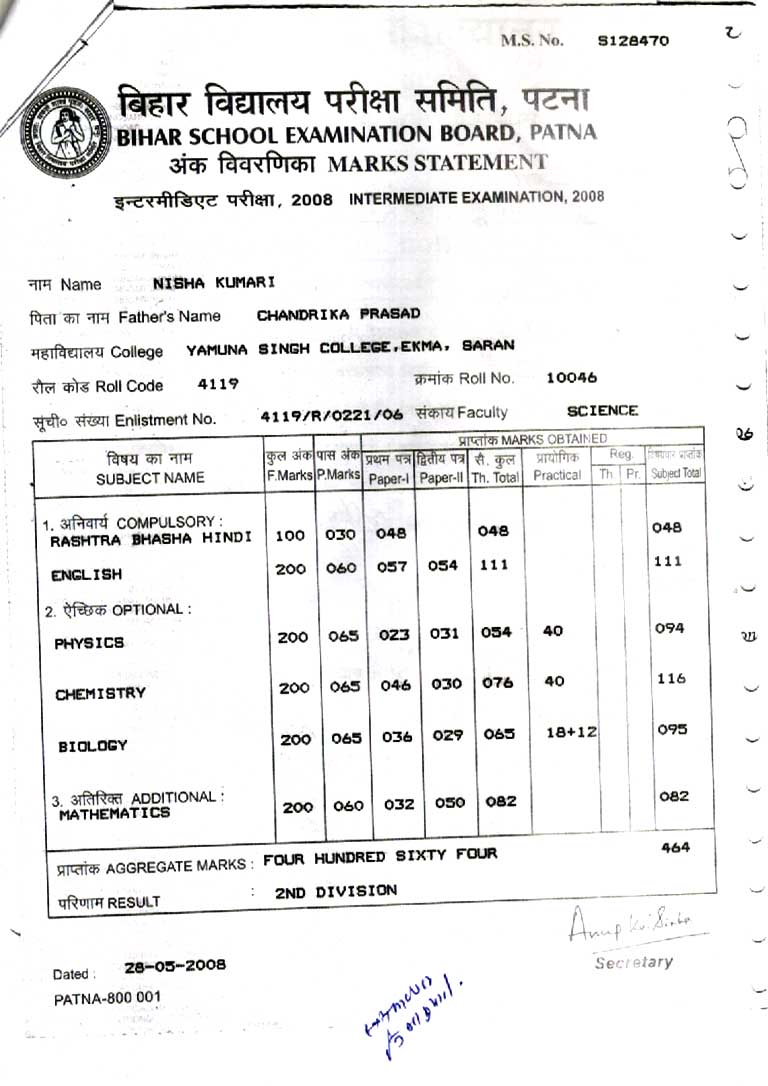 | Exam | Full Marks | Pass Marks | Marks Obtained |