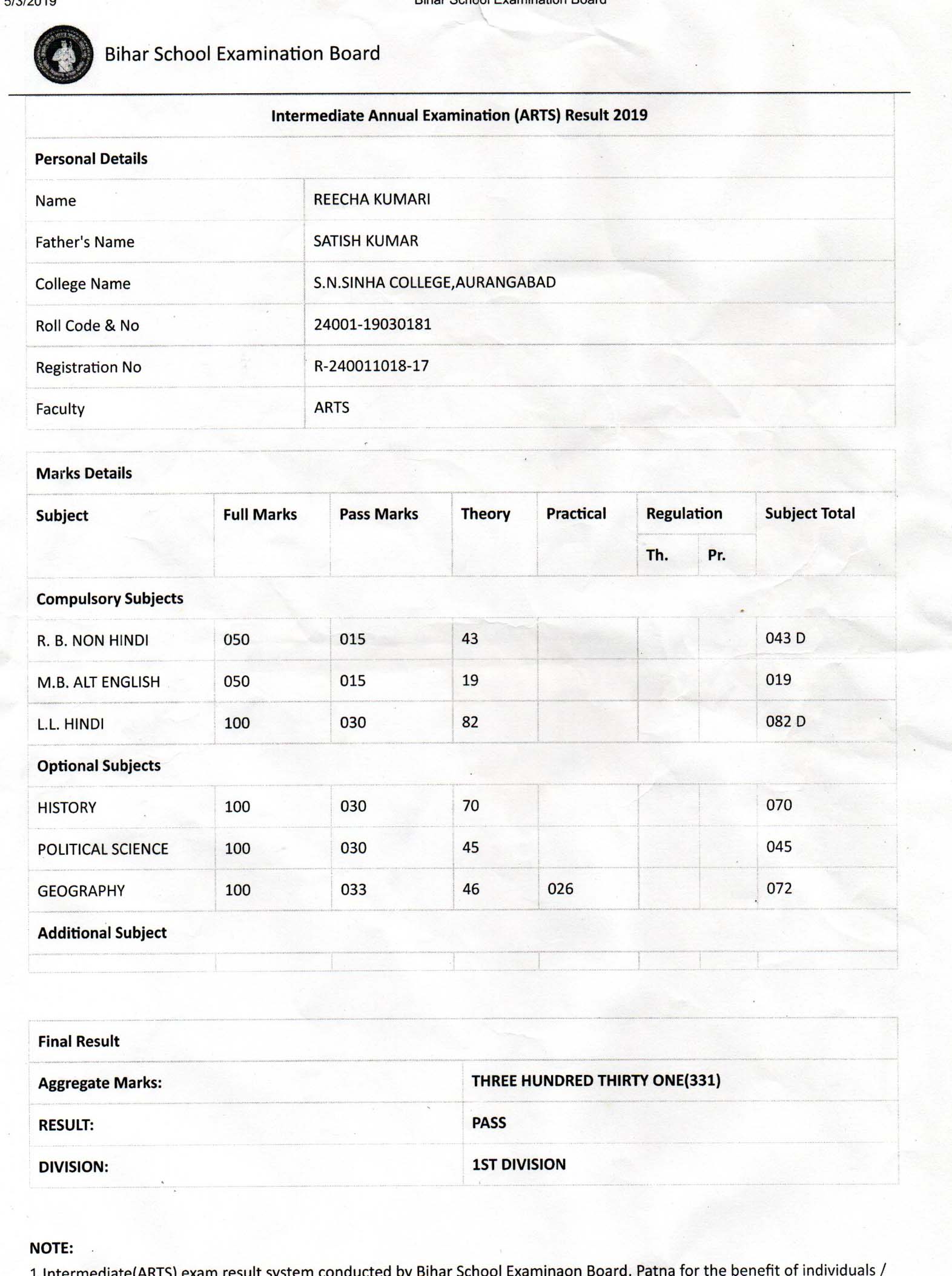 | Exam | Full Marks | Pass Marks | Marks Obtained |