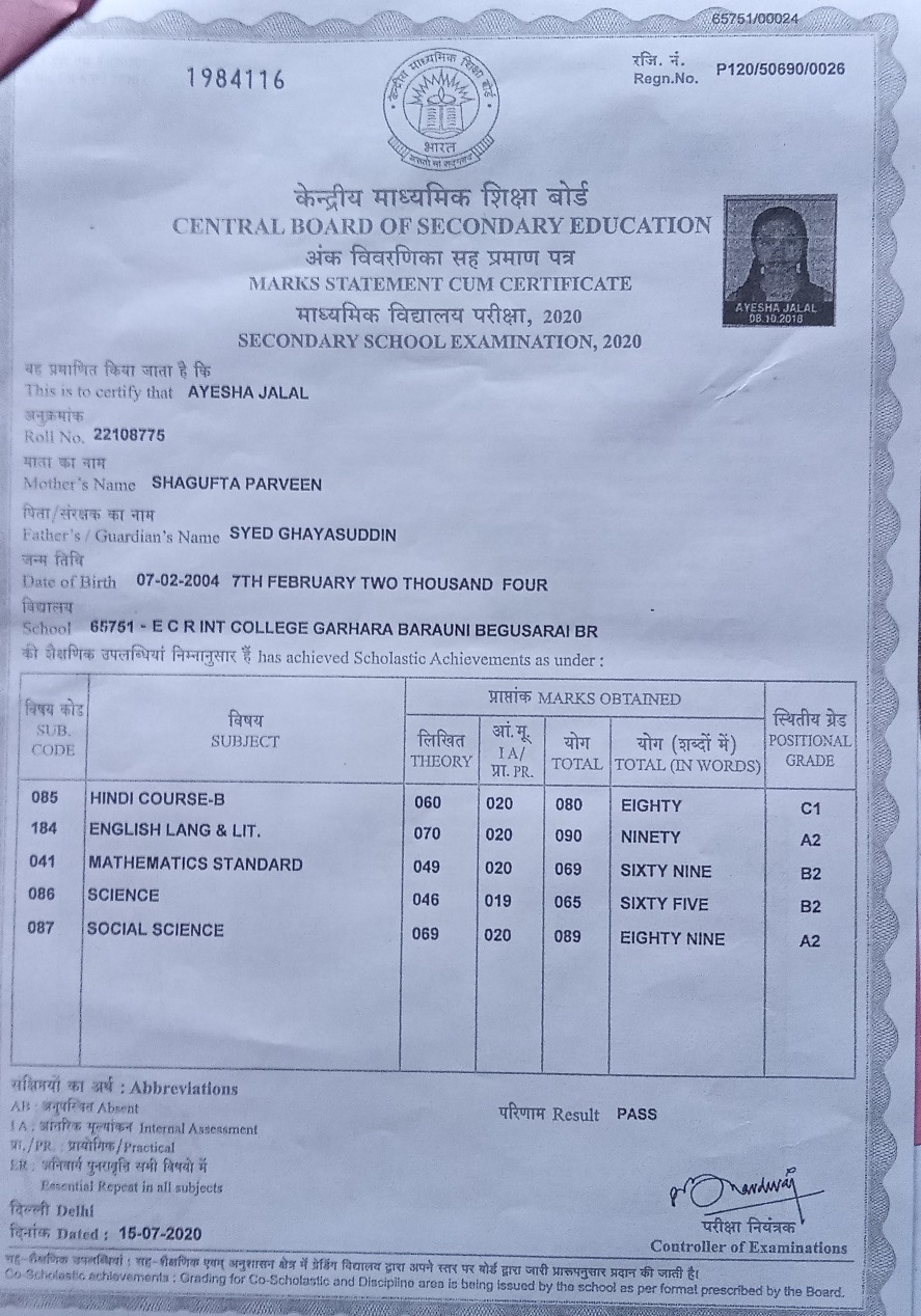| Exam | Full Marks | Pass Marks | Marks Obtained |