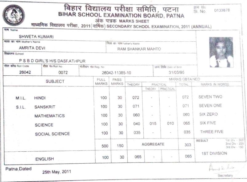 | Exam | Full Marks | Pass Marks | Marks Obtained |