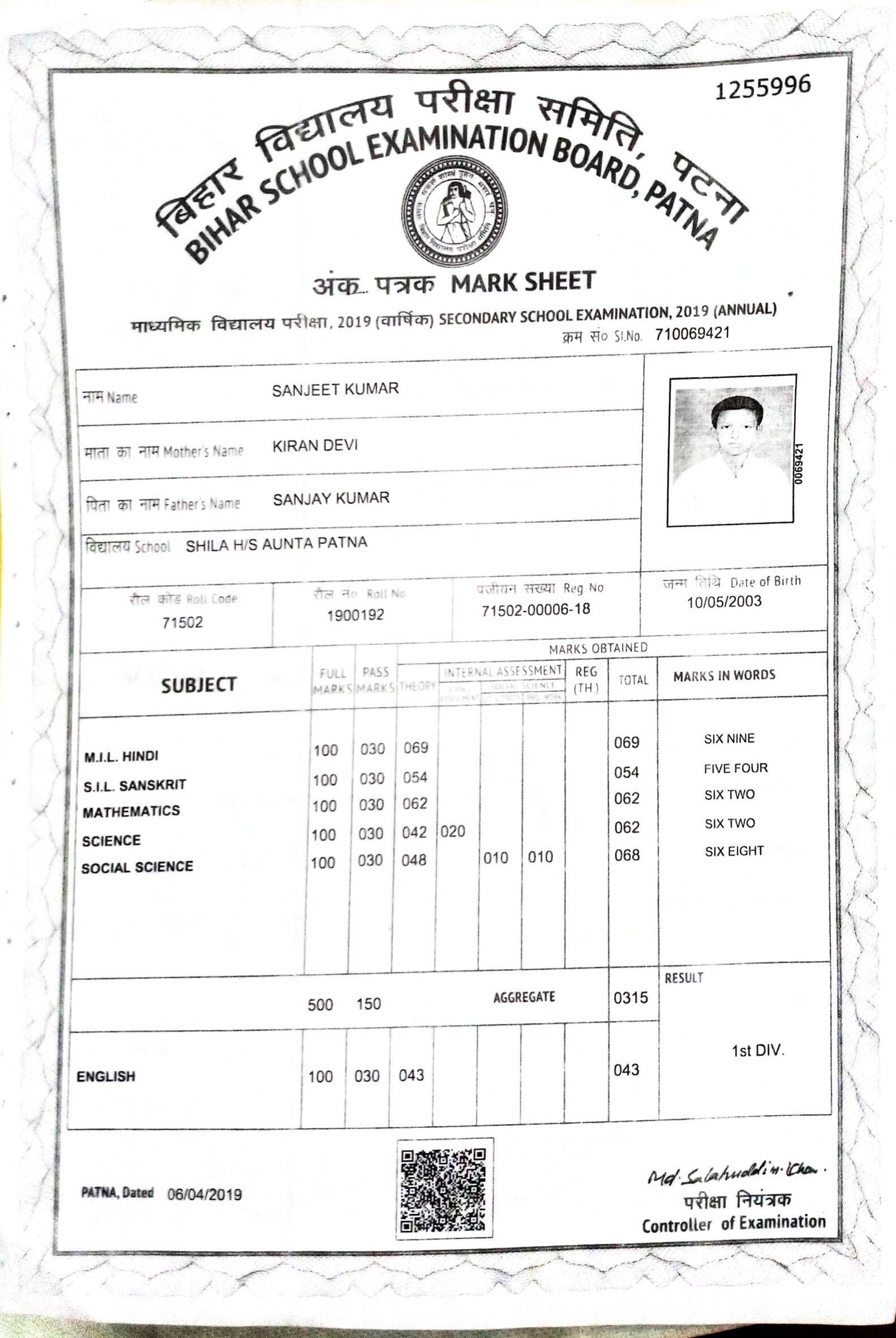 | Exam | Full Marks | Pass Marks | Marks Obtained |