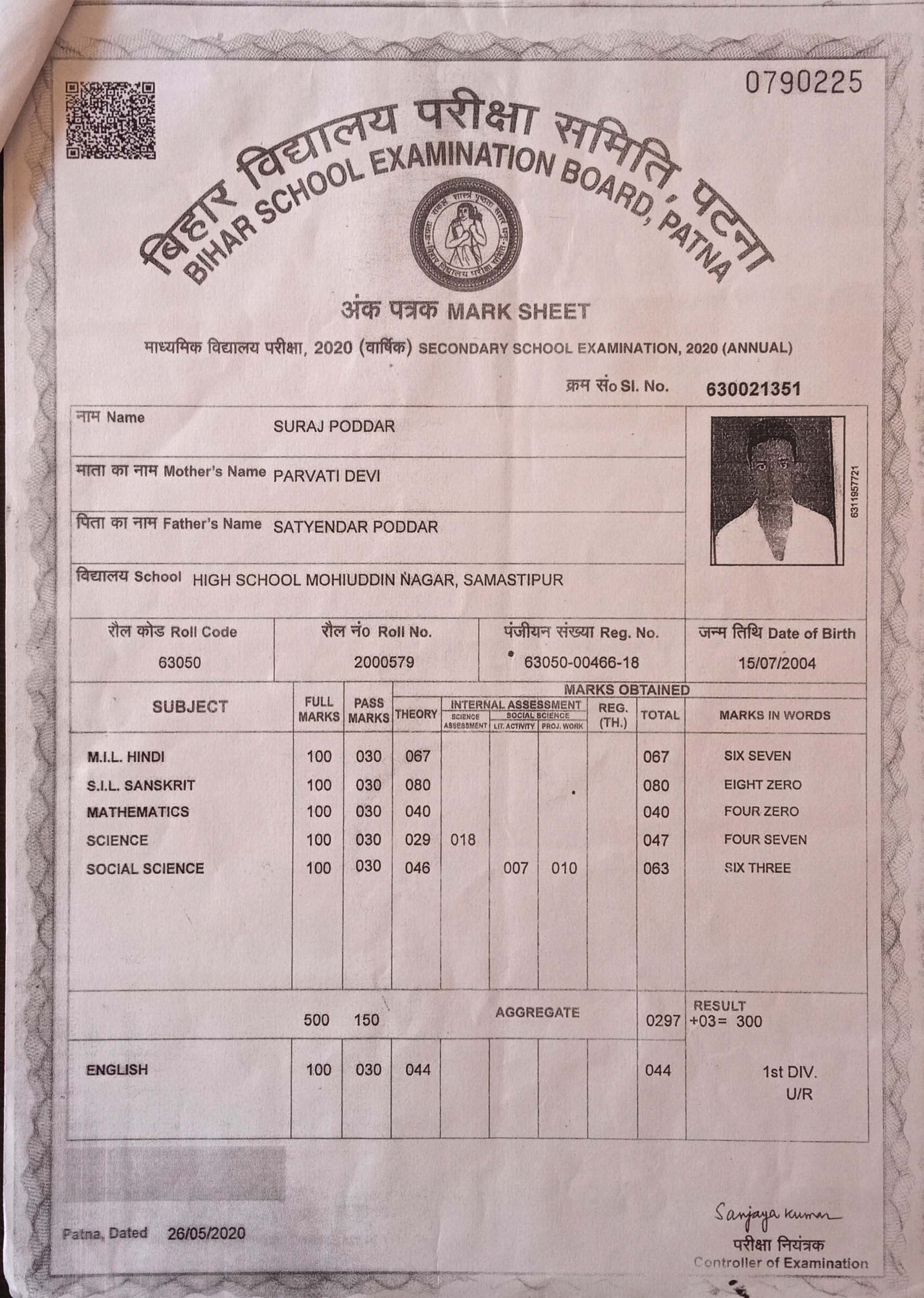 | Exam | Full Marks | Pass Marks | Marks Obtained |