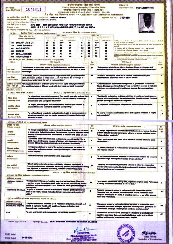 | Exam | Full Marks | Pass Marks | Marks Obtained |